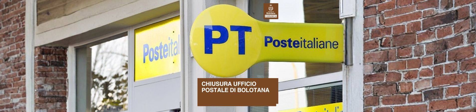 Si informa la cittadinanza che, per consentire il completamento dei lavori tecnici propedeutici alla realizzazione del Progetto Polis – Casa dei Servizi di Cittadinanza Digitale, l’Ufficio Postale di Bolotana, sito in Via Umberto I n. 43/A, per esigenze tecniche, resterà chiuso fino al 10/12/2025. I servizi postali saranno garantiti come di seguito specificato: