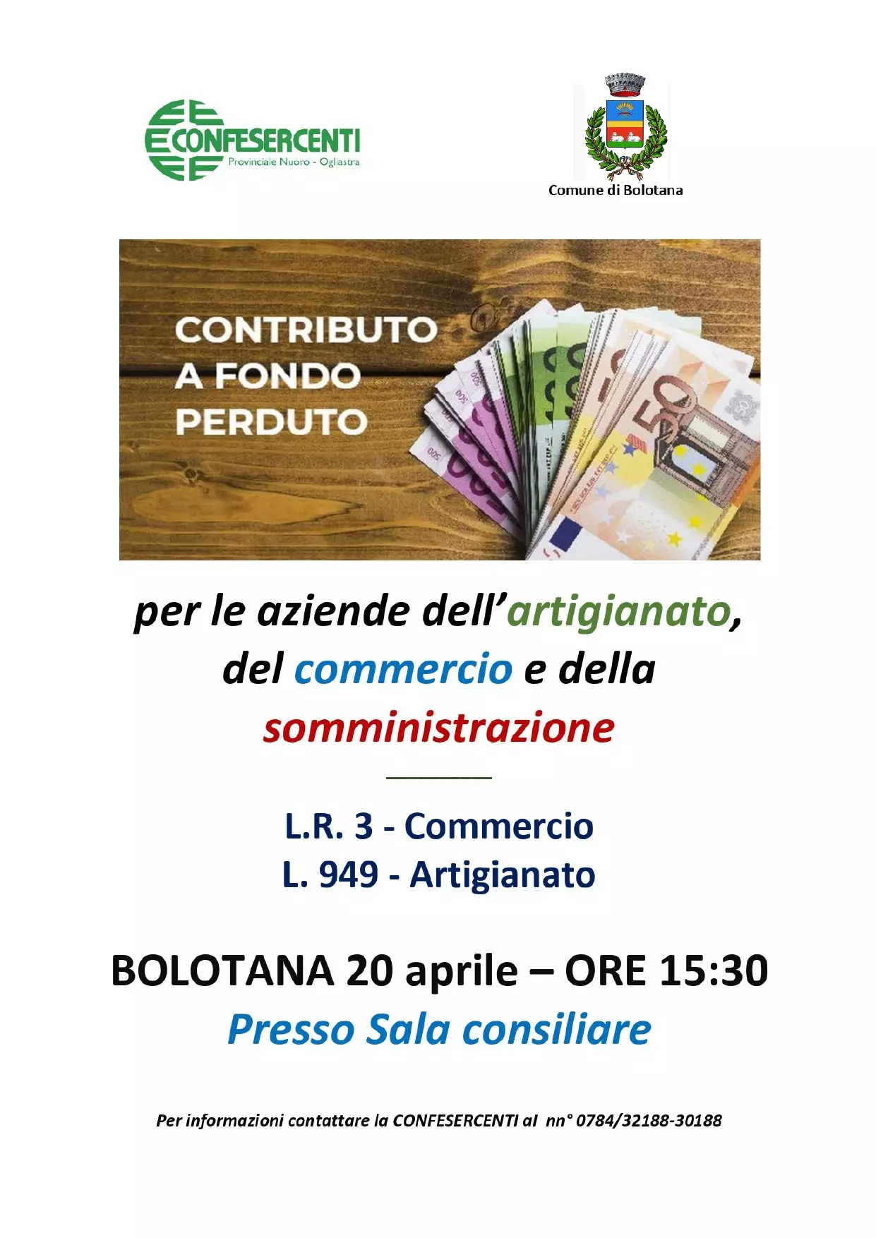 Confesercenti Nuoro – Ogliastra organizza un incontro informativo su contributi a fondo perduto in favore delle imprese