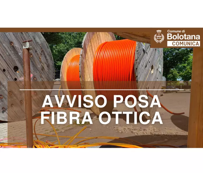 Si informa la cittadinanza che sono iniziati i lavori di posa della fibra ottica su tutto il territorio comunale.Tali interventi saranno realizzati mediante la posa di rete interrata dei cavi e si protrarranno per alcuni mesi.Questo progetto, pur essendo programmato in modo da limitare il più possibile fastidi alla popolazione, potrà comportare comunque qualche inevitabile disagio del quale ci si scusa anticipatamente.Bolotana, 03.04.2024 Il SindacoFrancesco Manconi
