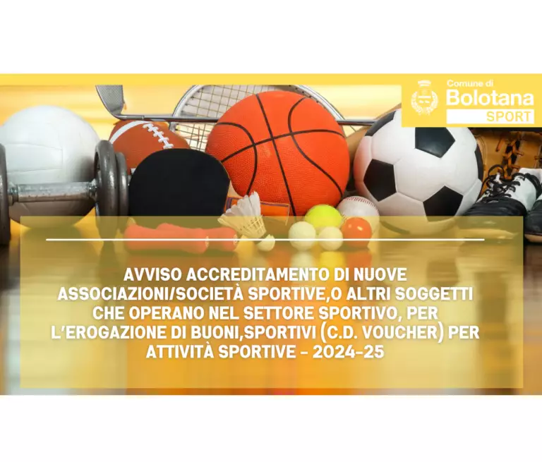 APERTURA DEI TERMINI PER L’ACCREDITAMENTO DI NUOVE ASSOCIAZIONI/SOCIETÀ SPORTIVE O ALTRI SOGGETTI CHE OPERANO NEL SETTORE SPORTIVO, PER L’EROGAZIONE DI BUONI SPORTIVI (C.D. VOUCHER) PER ATTIVITÀ SPORTIVE A FAVORE DI MINORI E GIOVANI (NATI DAL 2008 AL 2019