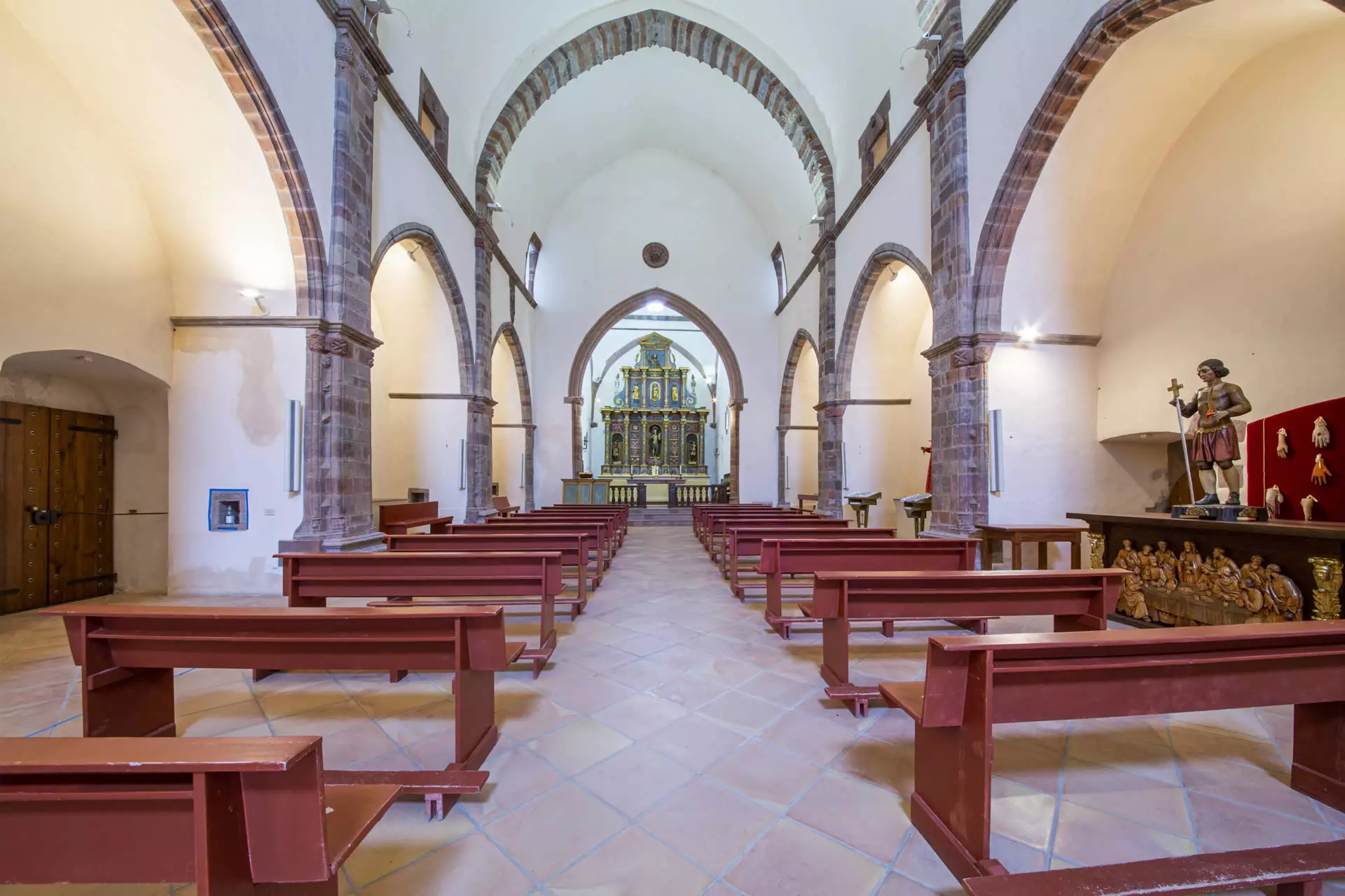 San Giovanni è una chiesa in stile tardogotico dall’aspetto rustico ma affascinante, con le pietre irregolari, il rosone gotico e i portali di trachite. Non si sa quando fu eretta, pare fra il 1630 e il 1636 sopra antiche rovine preesistenti. L’interno è diviso in tre campate. In una nicchia scavata nella parete si conserva la statua del santo risalente al Cinquecento, bellissimo esempio di “estofado de oro”. L’altare di pietra è uno dei pochi elementi rimasti dell’assetto originario.
