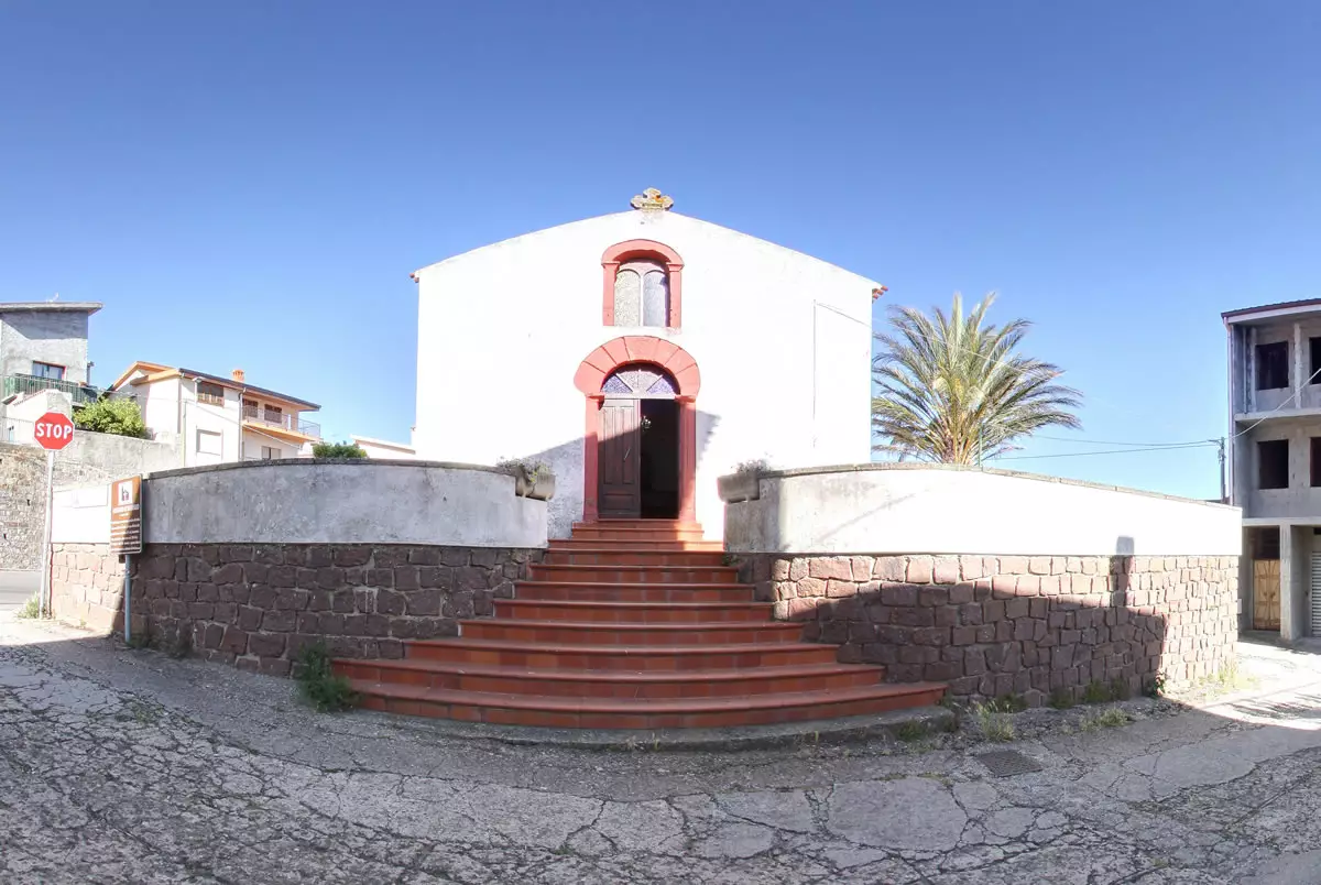 La chiesa esistente già in età medioevale venne ricostruita in epoca cinquecentesca ad opera di maestranze locali. Notevole è il portale scolpito in trachite rosa attribuita al cagliaritano Miguel Puig. Degno di nota il vistoso campanile a pianta quadrata dotato di monofore e cupola piramidale. Alto ben quaranta metri, è visibile da tutto il paese.